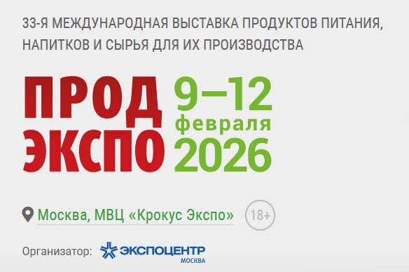 С 9 по 12 февраля 2026 года в Москве состоится 33-ая Международная выставка продуктов питания, напитков и сырья для их производства «Продэкспо – 2026», которая пройдёт на территории МВЦ «Крокус Экспо».